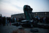 The performance takes place on the parking lot next to a former paper mill which will be demolished this summer. One of the oldest building complexes in the area, the historic brick building from the 1790s will be replaced by yet another block of high-priced office and residential buildings that now shape the area. Besides this, the venue holds various personal memories for DISAPPEARING BERLIN. Until 2018, the Schinkel Pavillon studio and multiple other artist studios were located here. Further, in the summer of 2019, one of the first DISAPPEARING BERLIN performances with Young Boy Dancing Group transformed the sand hills of the neighboring construction site into an apocalyptic performance ground.